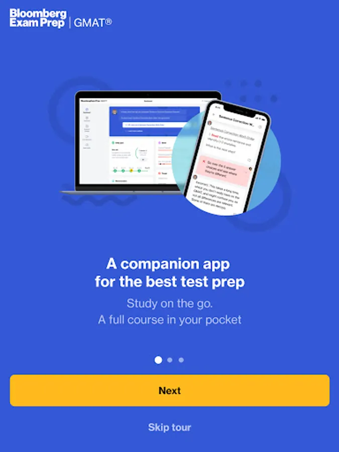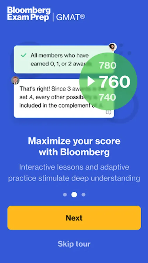 Maximize your GMAT score using Bloomberg GMAT Prep, the only GMAT program that harnesses adaptive learning technology to deliver the optimal content at the right time so that you reach your target score faster. Our AI software analyzes your progress to give you the most personalized, targeted recommendations as you learn. Think of us as a personal tutor, helping you master all the material you need to ace your exam.