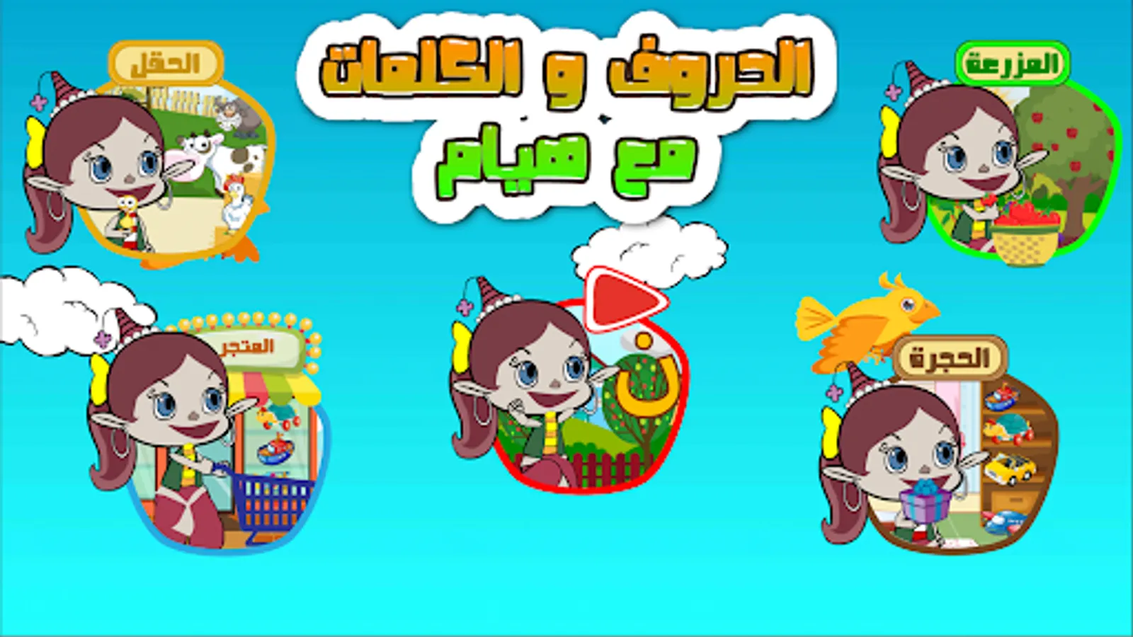 Play with beloved cartoon characters from the cartoon boy Burhan and the character of the genie Hatsu and his daughter Hiam and the game of running and jumping and picking up letters and avoiding obstacles and buy from the store various things in Arabic letters that have been collected and then watch them in the room, farm, field, forest and sea Click on it to learn its pronunciation, the pronunciation of the letter that the word begins with, and the shape of this letter.