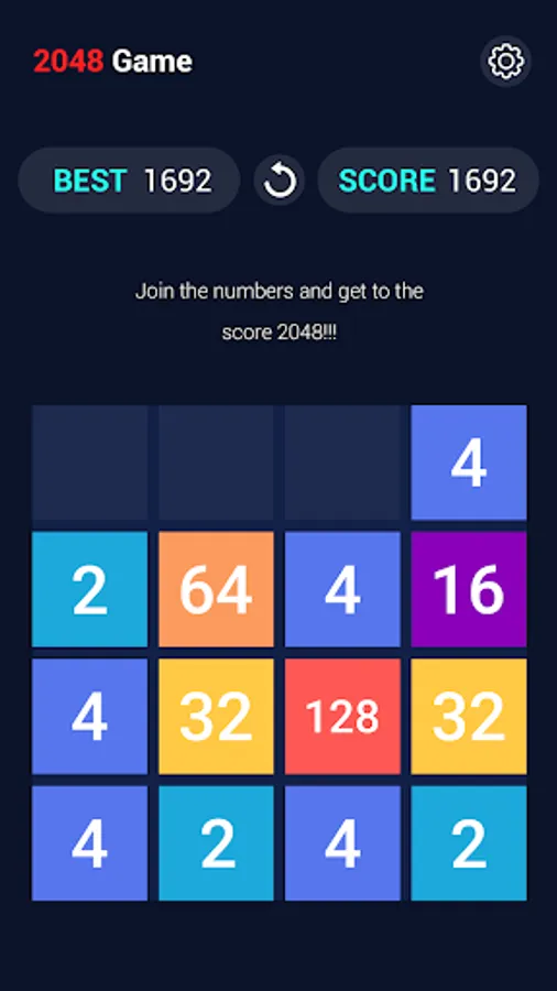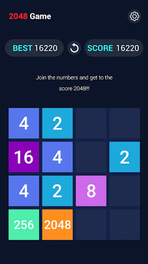 The 2048 game is a fun, addictive and simple puzzle game. You join the numbers and get to the 1024 tile, the 2048 classic tile, the 4096 tile, the 8192 tile and play as much more as you wish to make it more challenging of numbers!