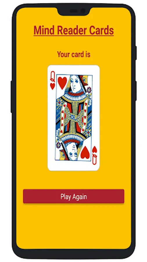 Mind Reader Cards allow users to first guess one card from given 21 random cards and then it performs the magic algorithm to identify which card user have guessed. To reveal your card, app asks you 3 simple questions and based on answer of those questions, app finds out your true card.