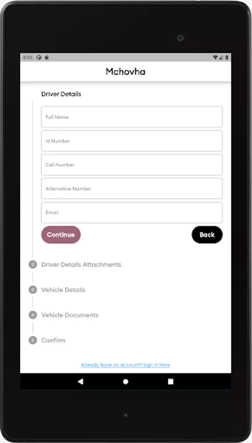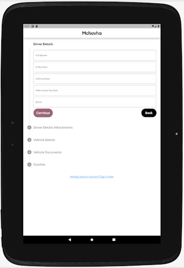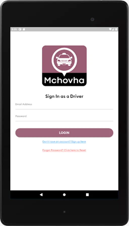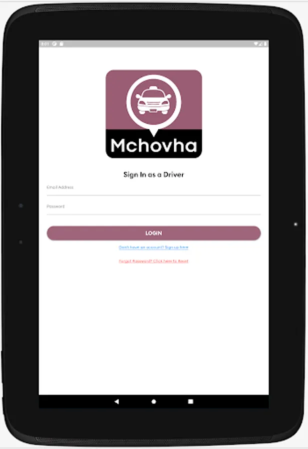 App specifically for Mchovha Drivers. One can self register with their email, upload required documents and our team will vet their driver application. Once approved one can start accepting ride requests