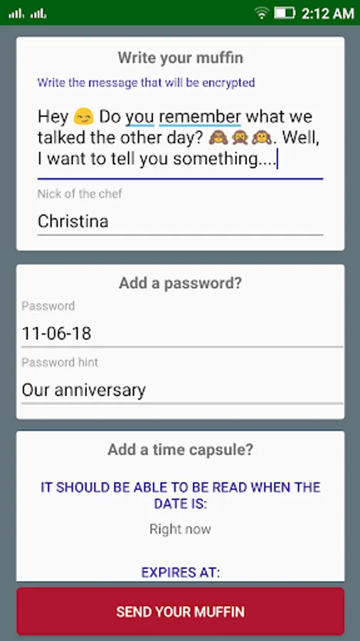 Also you can add a time capsule (a future date in which the message can be read and / or another future date in which the message expires and can no longer be read).
