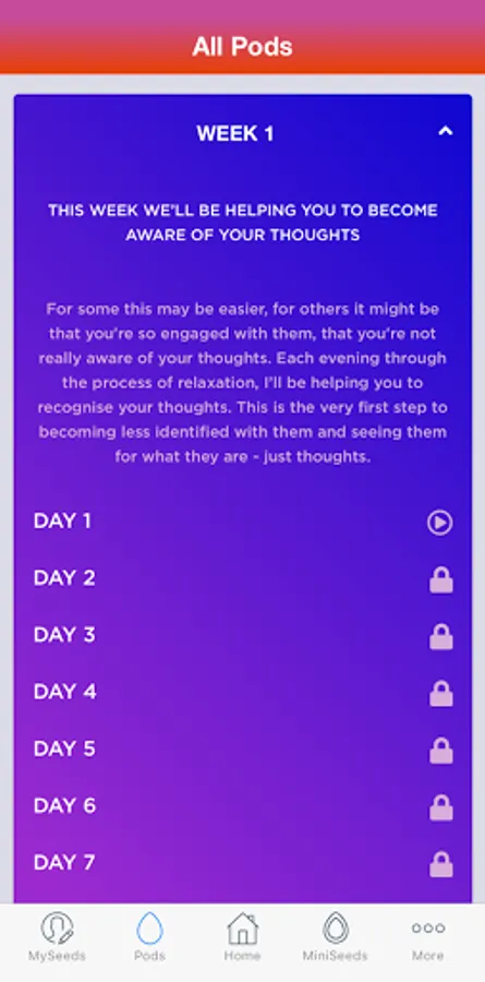 Life can often feel overwhelming and difficult to cope with, but most of the time it's not the situation presenting itself which is the problem, but your thoughts about it. MindSeeds is the 28-day audio programme designed to help you to overcome anxiety, stress, sleep problems, depression and even bad habits by becoming aware of your thoughts and changing them.