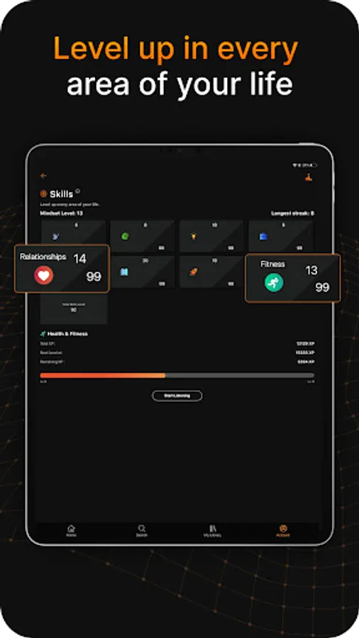 The app is the perfect entry point for those seeking life improvements, but also includes next-level thinking, training, and ideas for those wanting to speed up their success.