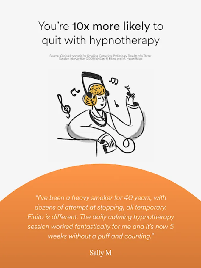 Finito is a self-hypnosis program that addresses the underlying reasons that cause you to smoke, providing hypnotic suggestions to the subconscious to manage cravings, emotions, and habits.