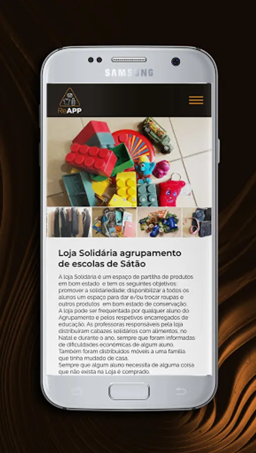 Reapp is the result of the participation of Bernardo Santos, Dinis Mano and Tomás Nunes from Grupo de Escolas de Sátão in the Apps for Good 2020 competition. The idea arose within the scope of a project on sustainability, developed under the guidance of English teacher Maria Silva . The idea was to solve two concomitant problems: the problem of excess consumption and waste production and the increase in needy families due to the pandemic. Thus, it was decided to create this solution that allows solidarity stores to sell their products so that they can support those who need it most, while promoting the reuse of goods.