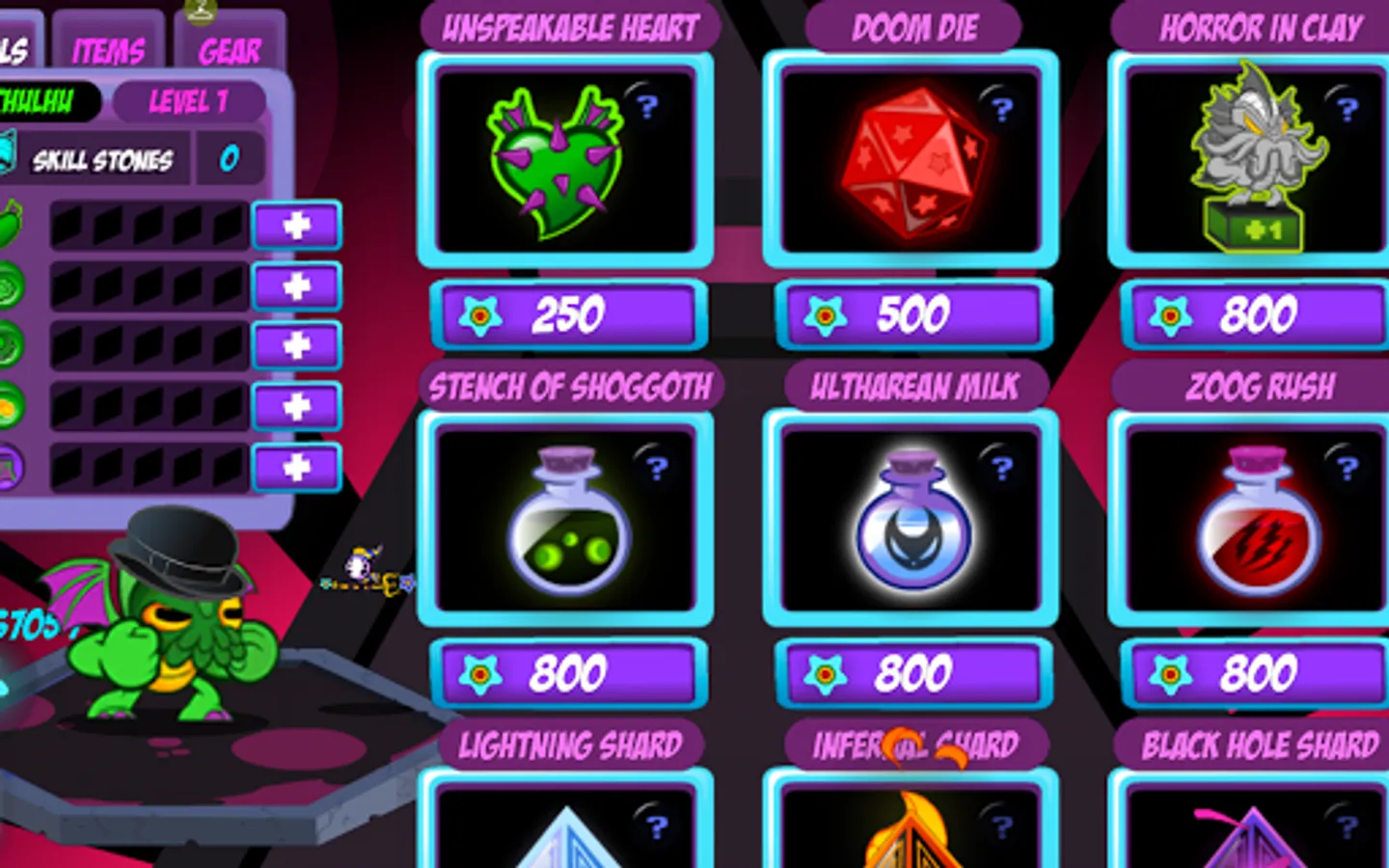 - Collect arcane swag from Nyarlathotep's Chaos Shop, or beat it relentlessly out of your pathetic, tottering foes!