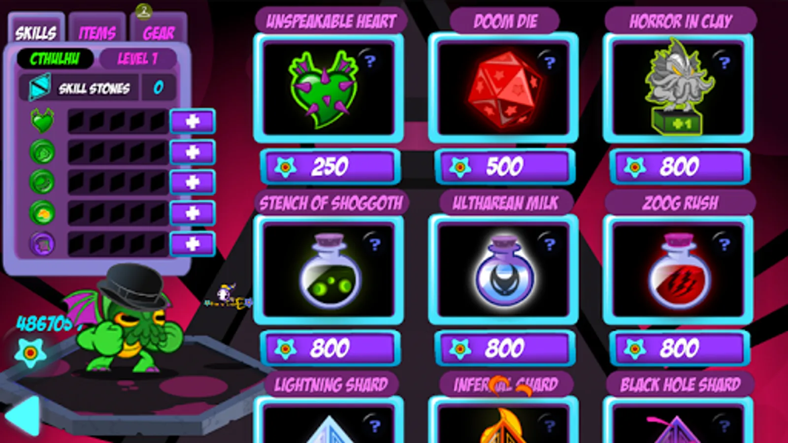 - Level up as you progress to enhance your unspeakable, earth-shattering skills!