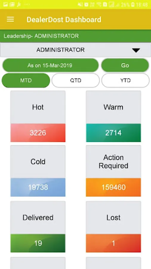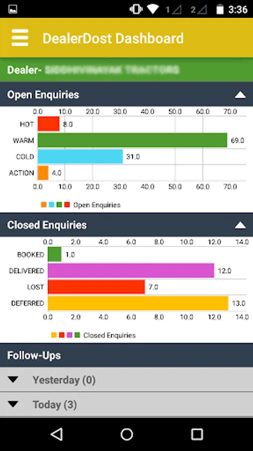 DealerDost-EMS has a clean and intelligent dashboard that provides hot/warm/cold enquiries in Open and Booked/Delivered/Deferred/Lost enquiries in Closed set of enquiries. The dashboard allows the user to drill down to the lowest customer level and view their information.