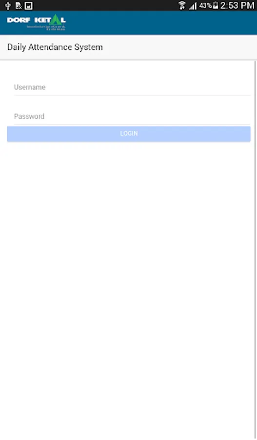 This app will allow tracking of attendance for Dorf Ketal employees.