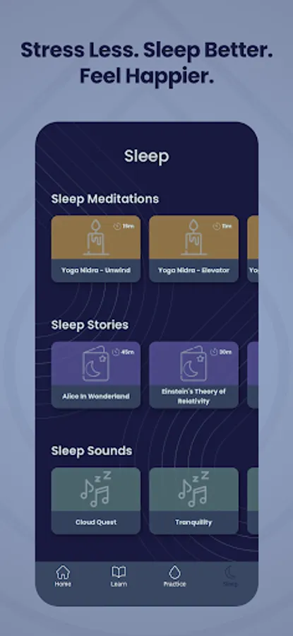 • Sleep meditations, stories, and sounds help you create the conditions for consistent, deep sleep