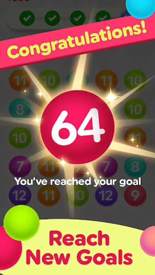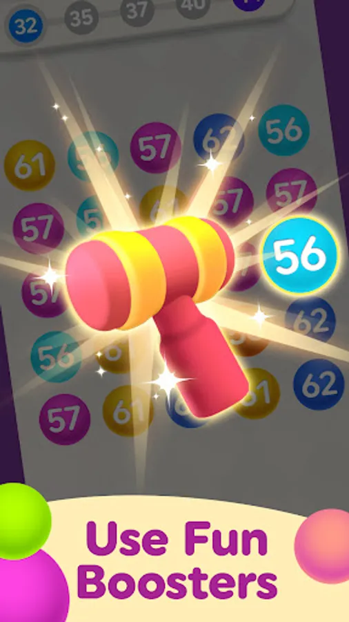 Link Numbers: Slide the dots with matching numbers in any of the six directions - up, down, left, right, or diagonally - to merge them and create a higher number.