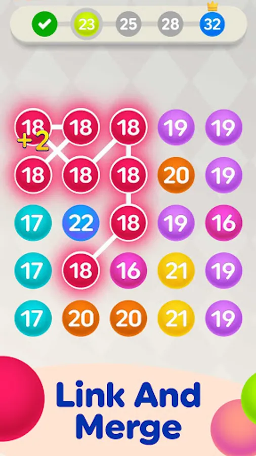 Welcome to the colorful world of "Number Link," an addictive and relaxing number merge puzzle game for adults that is free to play. Connect same-numbered dots to merge them and create a higher number. Create long chains for more points and jump to higher numbers. Each level gives you a new goal to achieve! Challenge your brain with these exciting puzzles, and you'll soon be hooked on the game's simple and easy-to-play mechanics.