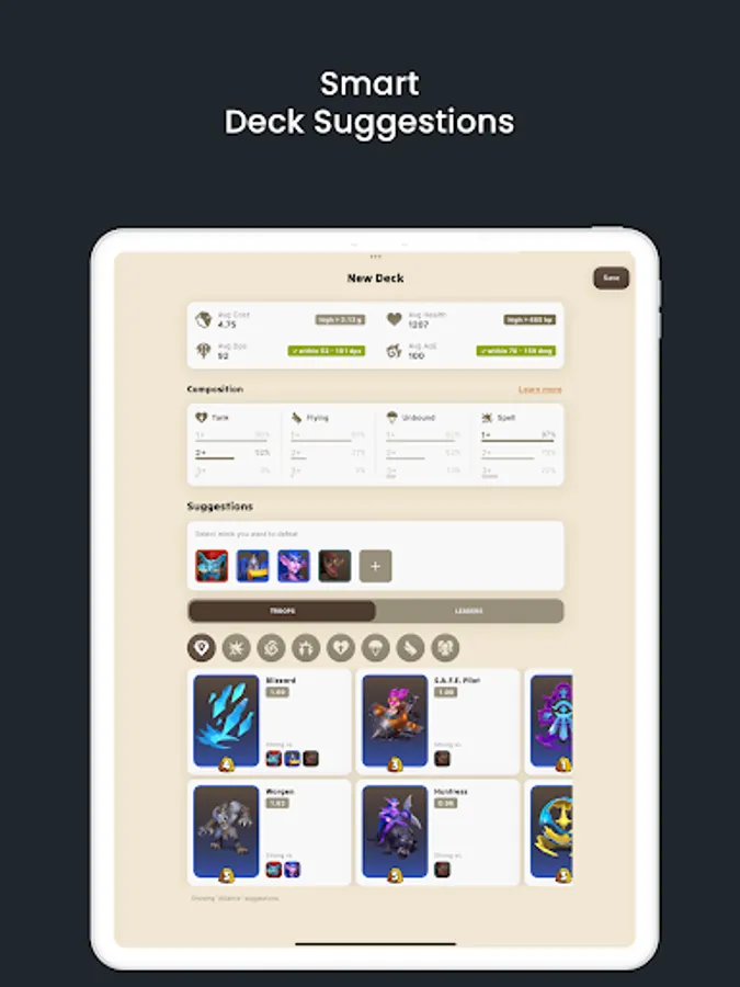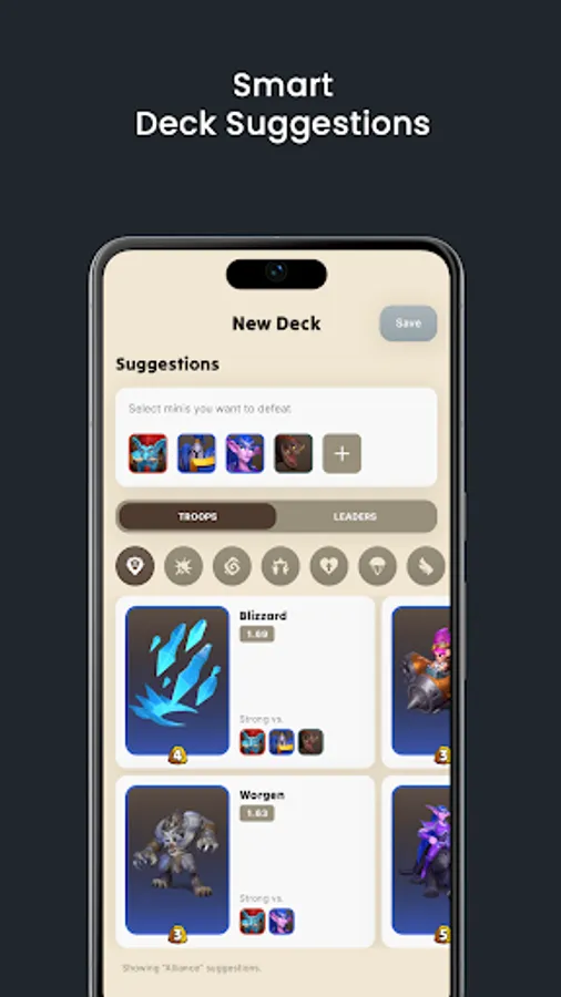 Need help building the perfect deck? Just input the minis you want to beat, and our system handles the rest.
