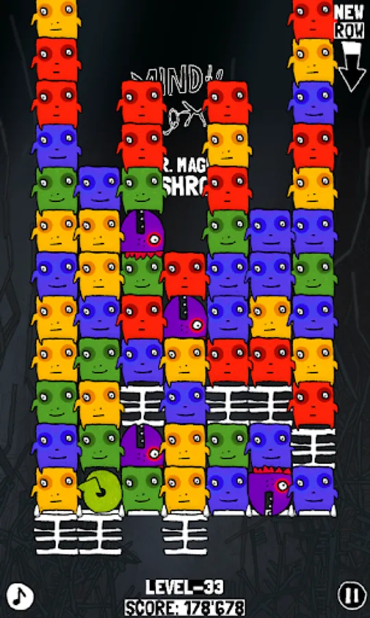 Match two ore more same coloured tiny monsters to make them disappear. Clear seven ore more to get extra points. To reach the next level move the keys to the bottom of the game board, while keeping the bloxes from reaching the top. Some special powerup characters will help you, other will challenge you.