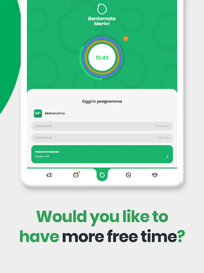 PROGRAMMING: organize your days and loads of study in a simple and intuitive way. Follow them with precision thanks to the TIMER to improve the effectiveness of your study and have more and more free time for you and your passions.
