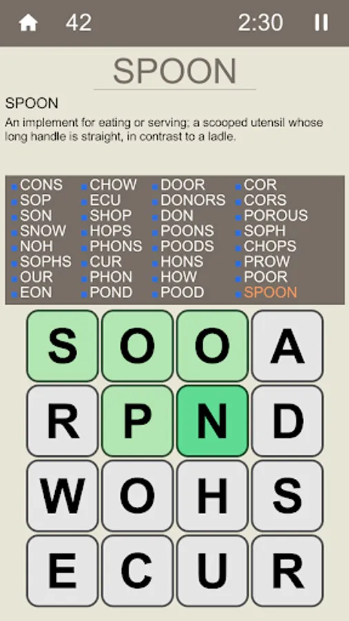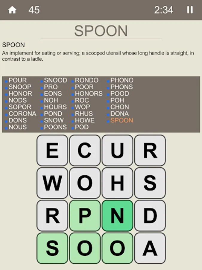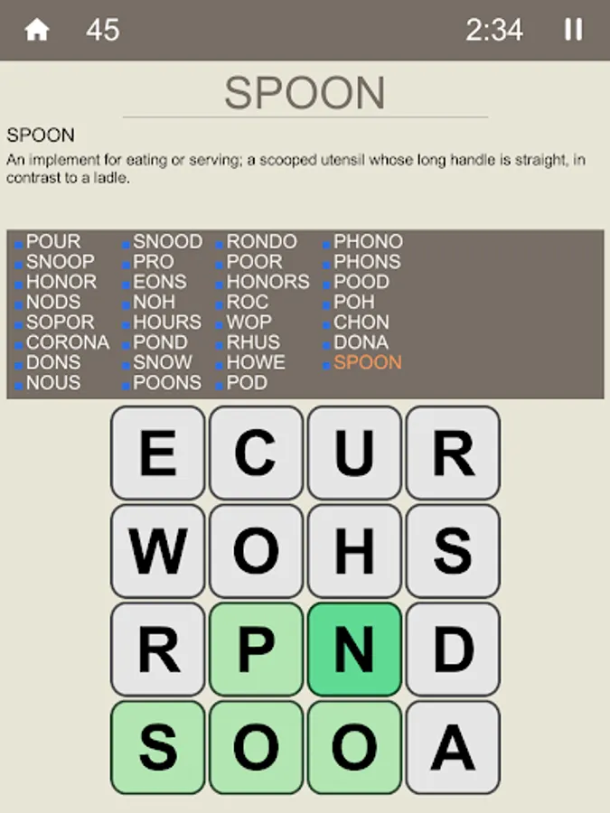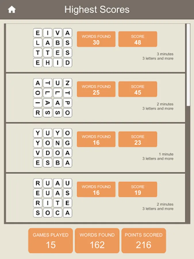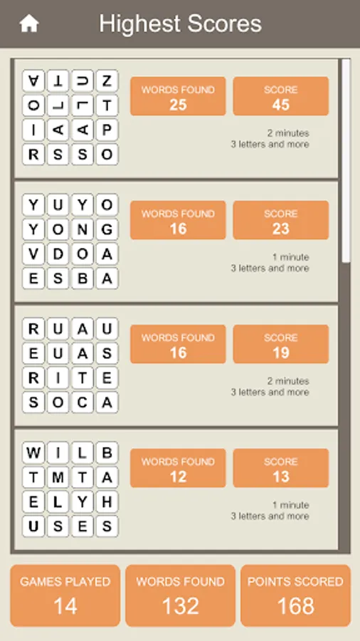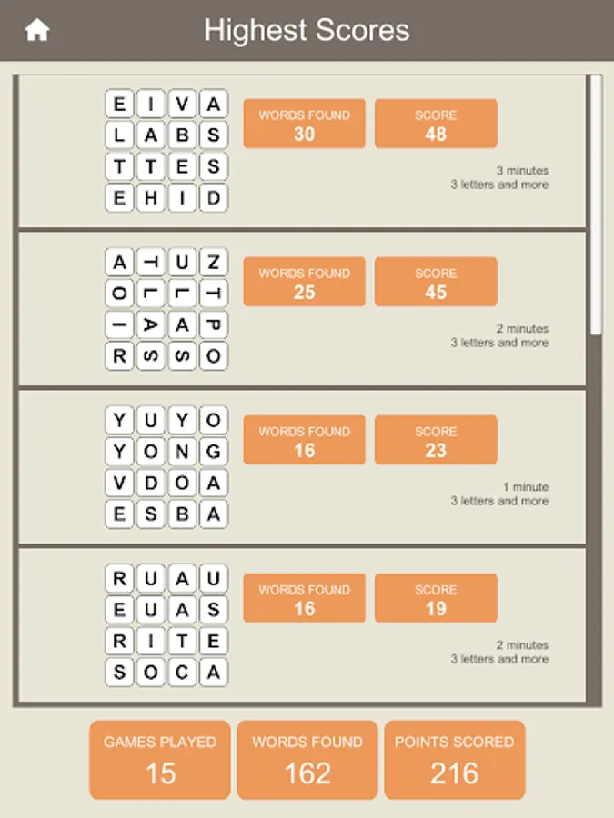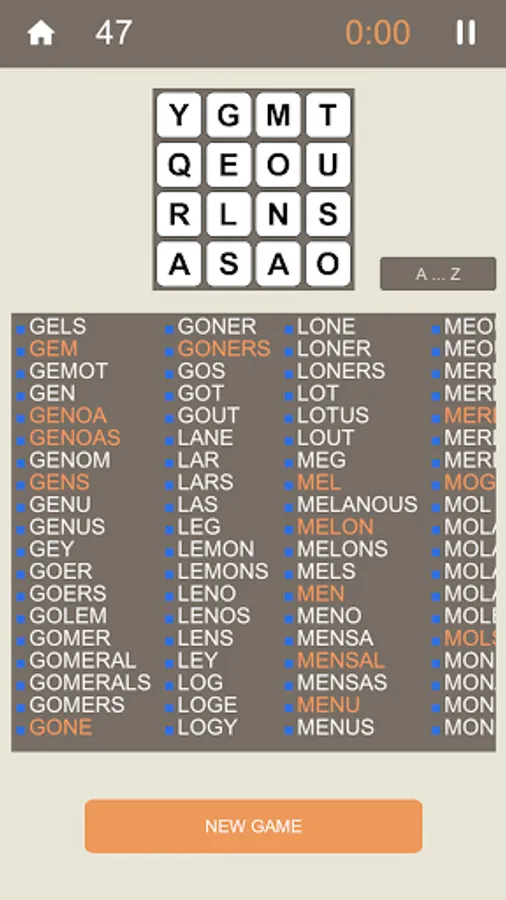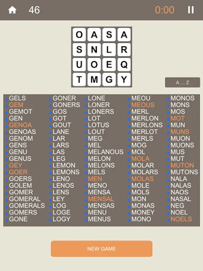 How many words can you find in a 16 letters grid, in a limited time?