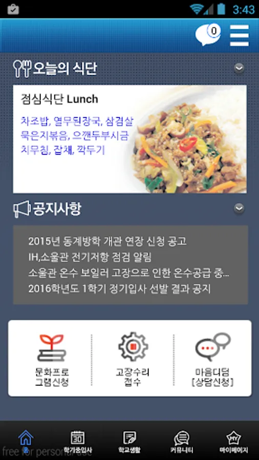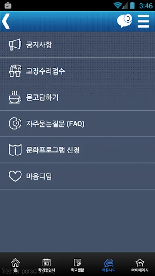 Unidom offers a variety of information for the convenience of students who use the dormitory, and offers the ability to apply for housing, counseling, etc.