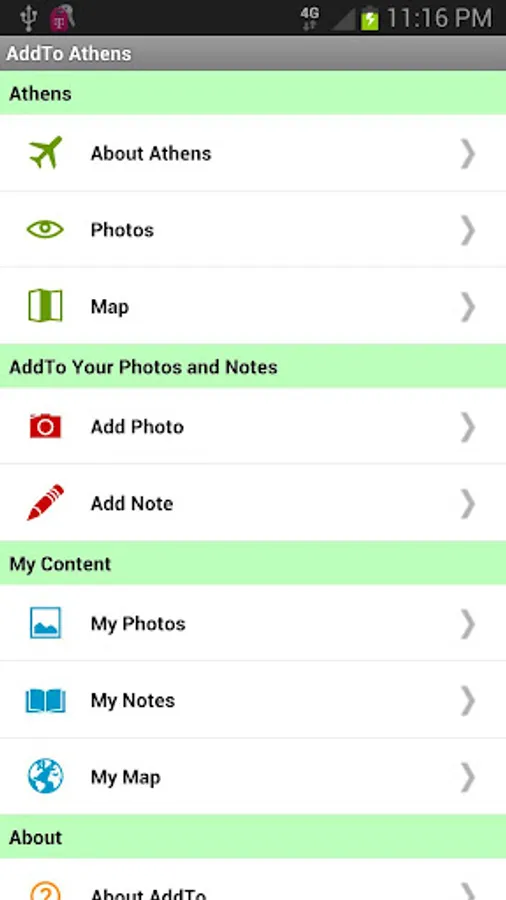 AddTo Athens lets you create your own travel guide from your photos and notes. Easily create your own map with the highlights you want, photo album and travel diary. At any time you can add a note or photo to your album. If you have allowed location, then your current location will be added to that note and photo. Send your notes, photos and maps to your friends.