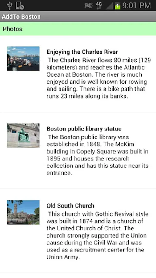 AddTo Boston shows you favorite Boston locations like Faneuil Hall, King's Chapel, the Freedom Trail, Boston Public Garden, Charles River, Columbus Park, Old South Church, the Granary Burying Ground and more. AddTo Boston lets you create your own map, photo album and travel diary.