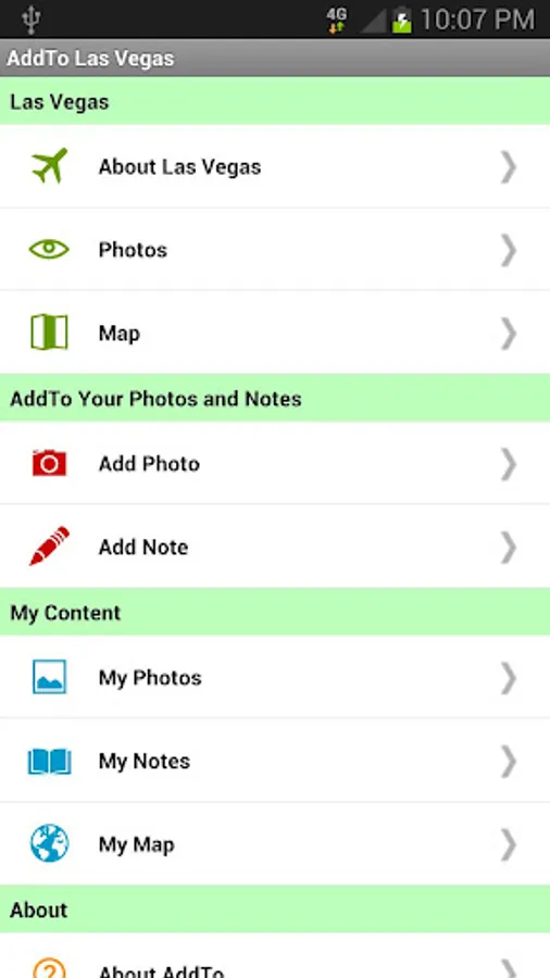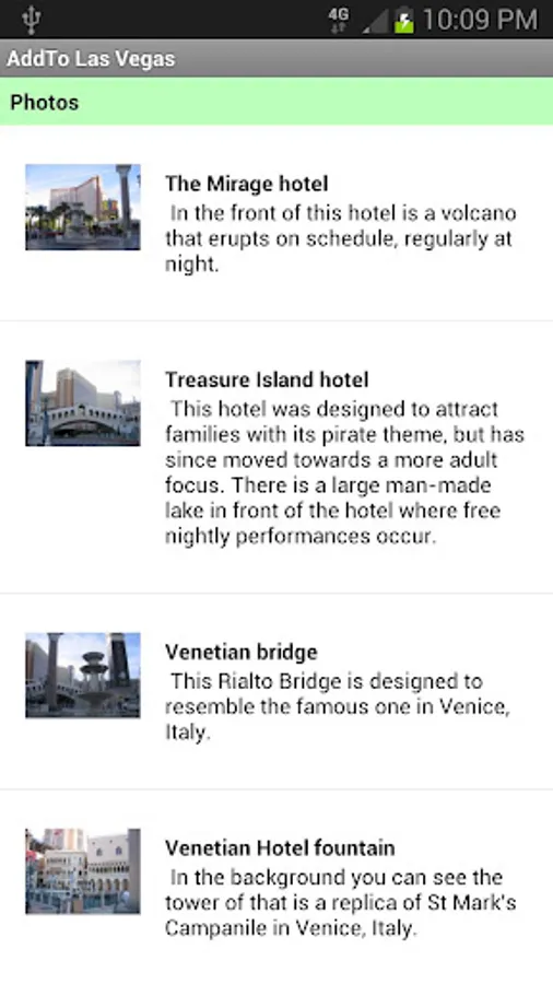 AddTo Las Vegas shows you favorite locations like the Mirage, Treasure Island, the Venetian, Bellagio, Caesar's Palace, the Excalibur, Luxor, Hoover Dam and more. AddTo Las Vegas lets you create your own map, photo album and travel diary.