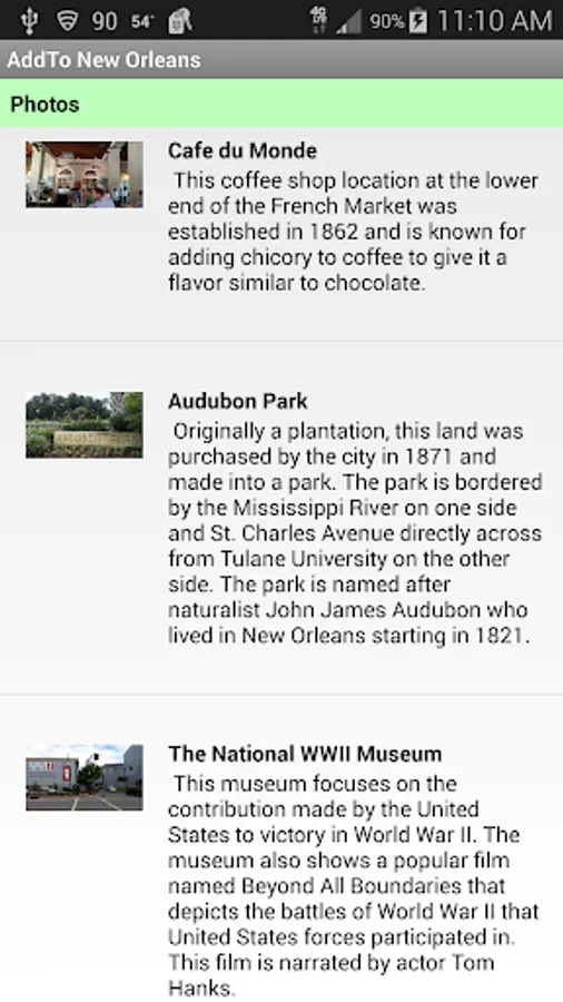 AddTo New Orleans shows you some of the best places in one of the most important cities in America. See Jackson Square, the National WWII Museum, City Park, Cafe du Monde (open since 1862), Louis Armstrong Park, Audubon Park, the French Market, Bourbon Street, St. Louis cemetery and more! AddTo New Orleans lets you create your own map, photo album and travel diary.