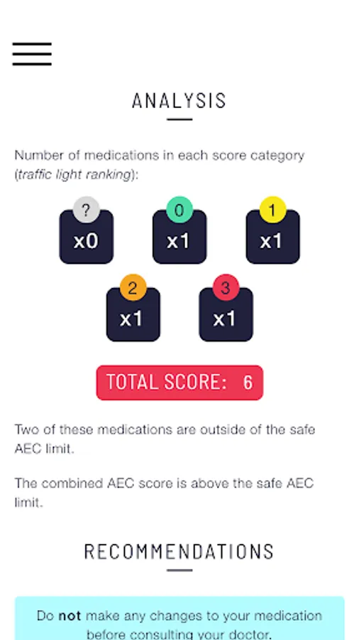 - Type in the medication and Medichec calculates an immediate score