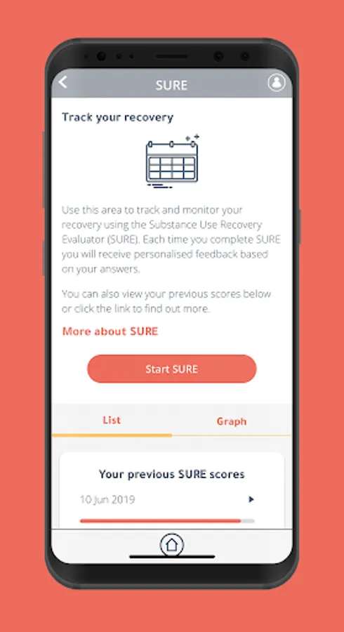 The Substance Use Recovery Evaluator (SURE): Use this to track all elements of your recovery including drinking and drug use, self-care, relationships, material resources, and outlook on life. You can track your scores over time and get personalised feedback including information and tips each time you use the tracker.