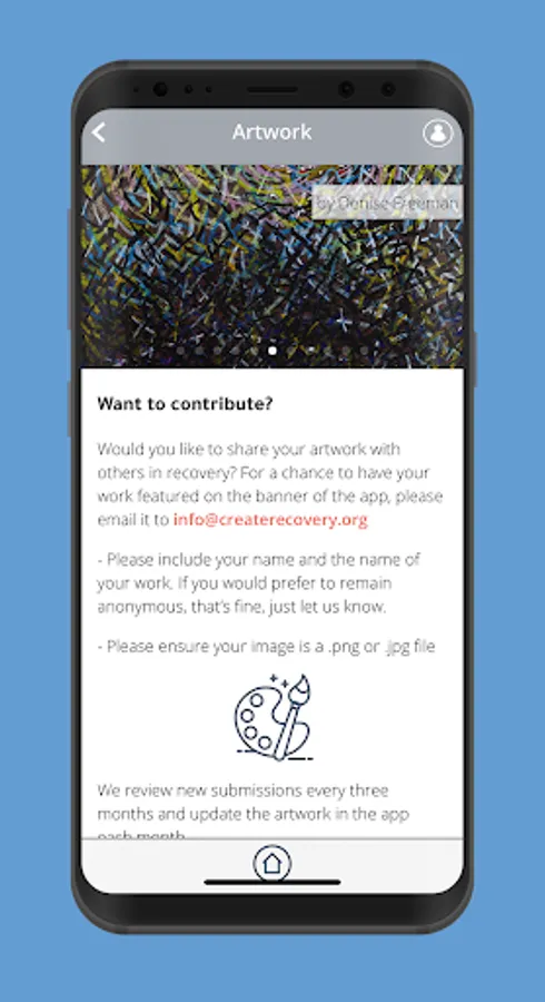 Share your artwork with the recovery community and have it included in the app.