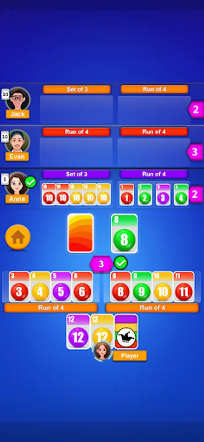After making a phase, players may “hit” onto other phases in play. The cards you add to the completed phases must fit into the phase, and you can only hit after your own phase is in play.