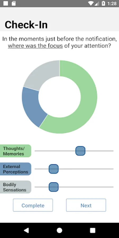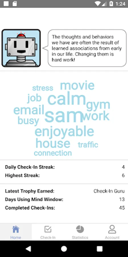 - Check-ins provide a convenient reminder so that you can track your thoughts throughout the day