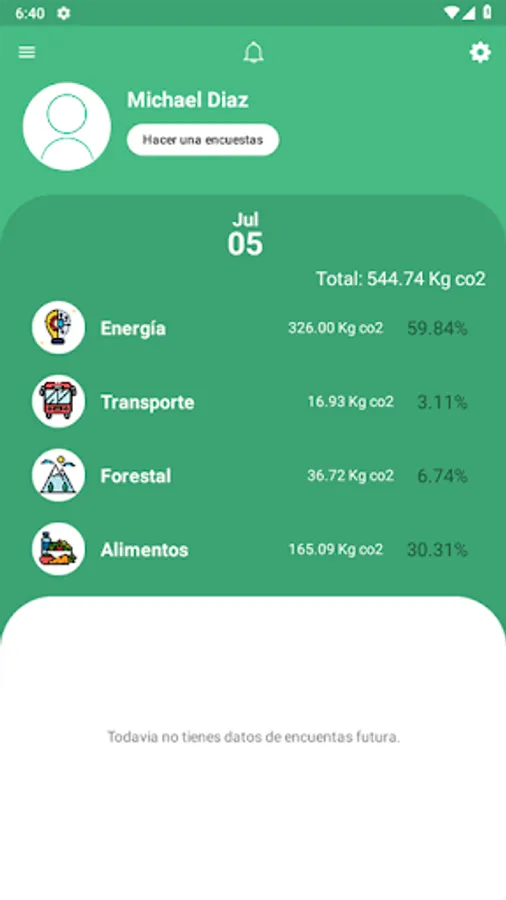 It is an application to help measure the ecological footprint at the Universidad Central del Este. To achieve this, it uses a series of metrics based on the daily habits of the user and determines the environmental impact of our habits in the environment that surrounds us.