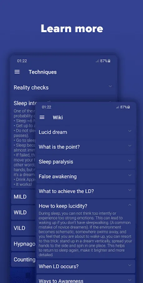 • Wiki to learn more interesting information and definitions about lucid dreaming.
