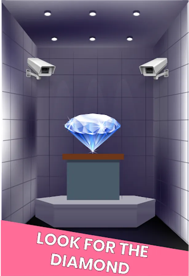 A huge famous diamond is secured inside the vault of Bank X. That looks like a great opportunity in town. Your mission is to break into the bank and get the diamond.