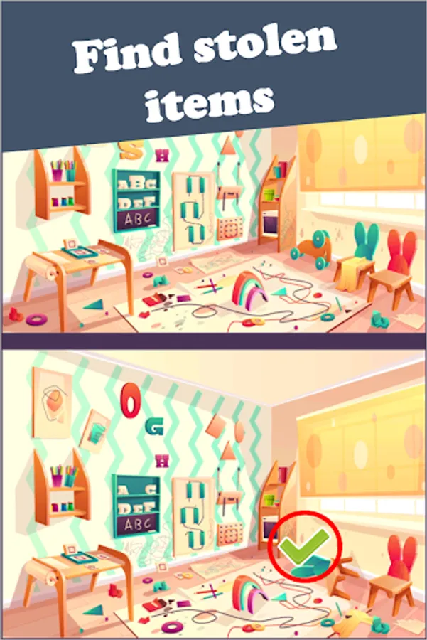 In this puzzle game π§©, you will be presented with two similar-looking images - one showing the scene before the robbery, and the other after the thief has struck. Your task is to closely examine both images and identify the differences between them. But that's not all - you also have to β find the stolen items, which could be cleverly hidden in the images π.