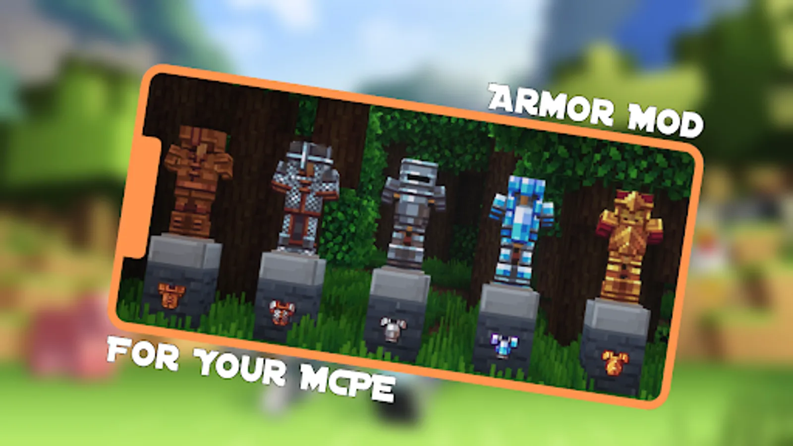 Armor Mod for MCPE App allow to download popular addons, mod and mod for MCPE. After add addons for minecraft will make your game more interesting, new items and Create and monsters will appear in it.