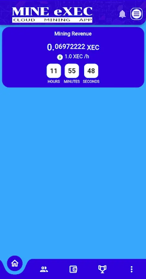 Mine eXEC app is for starting or tracking your mining sessions along with mined coin balance and withdrawals. As soon as you will set up your account, you will be allocated a mining account on our cloud server and this app is to manage all your cloud mining sessions.
