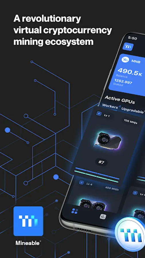 Mineable is a web3 ecosystem that virtualizes cryptocurrency mining.