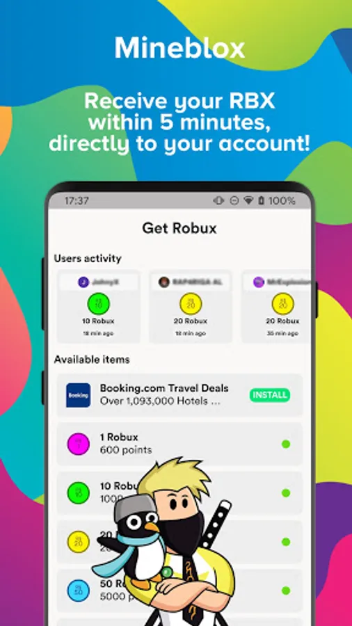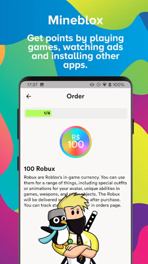 It is very simple - use your points and select amount of RBX you want to get, join our Roblox group, confirm your order and just wait for RBX! Detailed instructions are also included in the app.