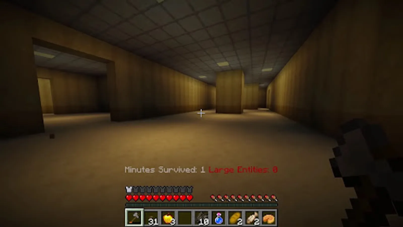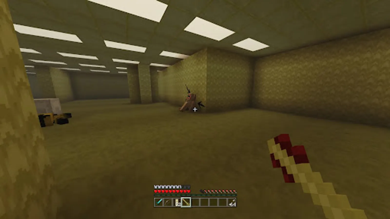Behind the scenes mod for minecraft Bedrock was created to keep the player in constant tension. You start in a large yellow room, go out into a corridor and see a long corridor of the same color with many rooms. You do not know where the exit is, you have to find it in order to leave this horror. All this is designed to scare you, be on the lookout. The behind the scenes mod for minecraft pe will not let you go just like that.