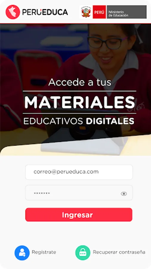Mobile application whose main purpose is that the educational community can access digital educational materials. It has the functionality to share educational materials (Whatsapp, Facebook and email) and download the materials to the device, it also allows you to search by category and filter by type of language.