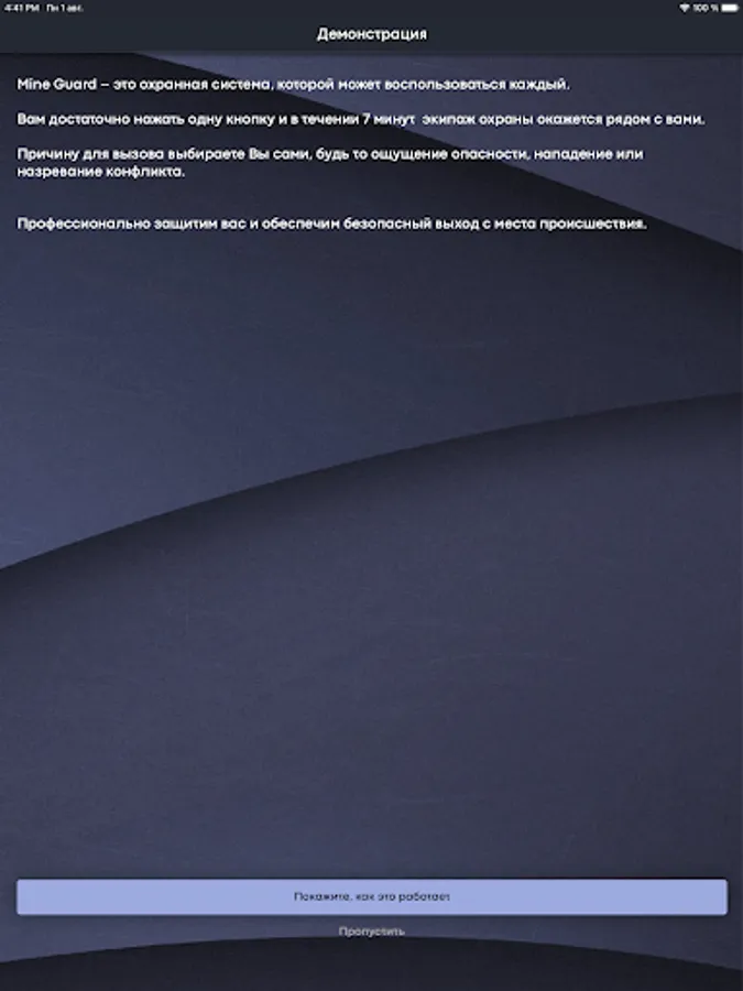 MineGuard2 is simple. You do not need to waste time on calls, explaining the address, the situation or the nature of the threat - you only need to press the help button, and you are already safe with our employees of the Rapid Response Team.