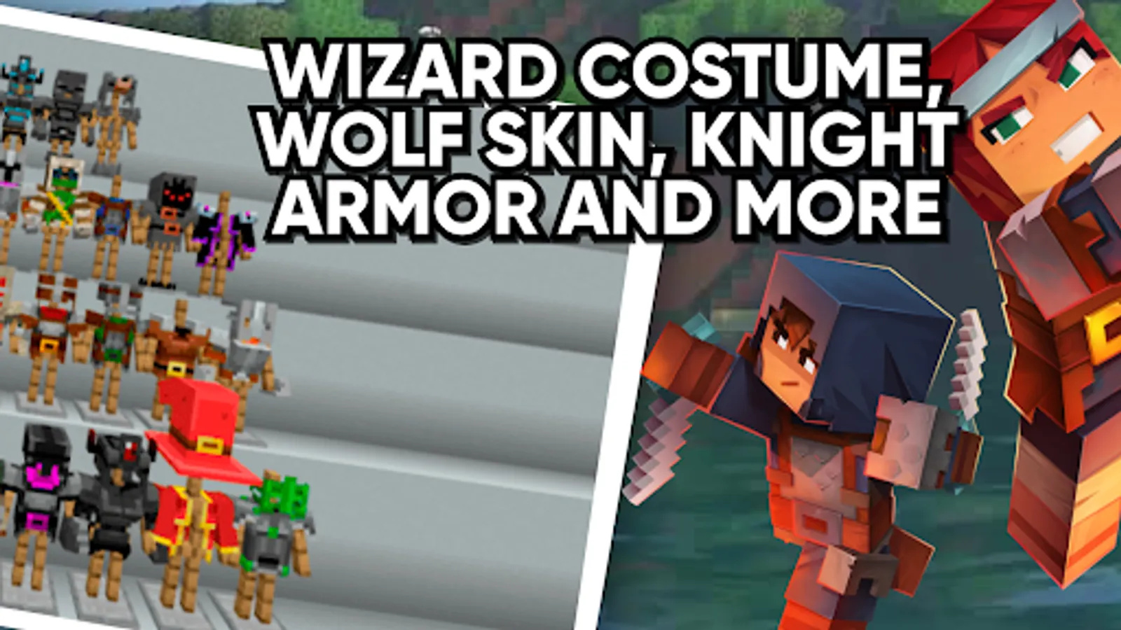 Minecraft dungeons armor mod is addon for Pocket Edition in which you can become knight, spider or any other creature, because armor is available in completely different colors. Minecraft dungeons armor for mcpe Bedrock supports multiplayer game mode in which friends can join in Pocket Edition.