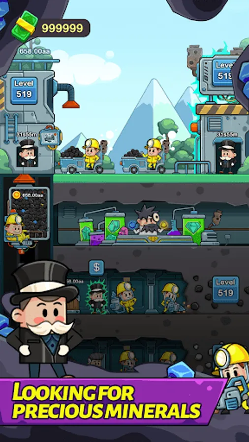 Idle Millionaire Mining is a simulation game. You are in the role of a mining tycoon, build your mining system, get ore and invest into other resources in order to gain profit.