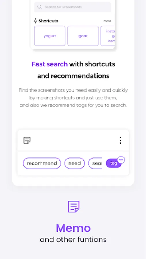 Shotag is a unique solution to your screenshot gallery. The app automatically analyzes your screenshots and extracts the “tags” set from each one, which make it possible to find screenshot with text. If you’ve had trouble finding, sorting or sharing screenshots in gallery, it’s time to download app and enjoy various new functions!