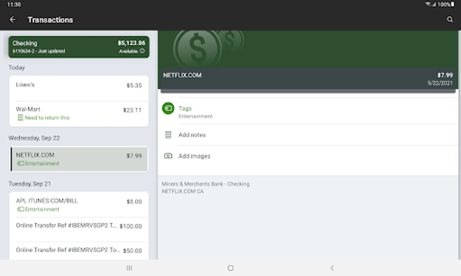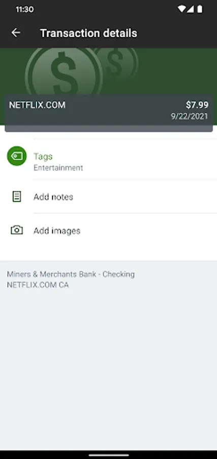 -Keep your transactions organized by allowing you to add tags, notes and photos of receipts and checks.
