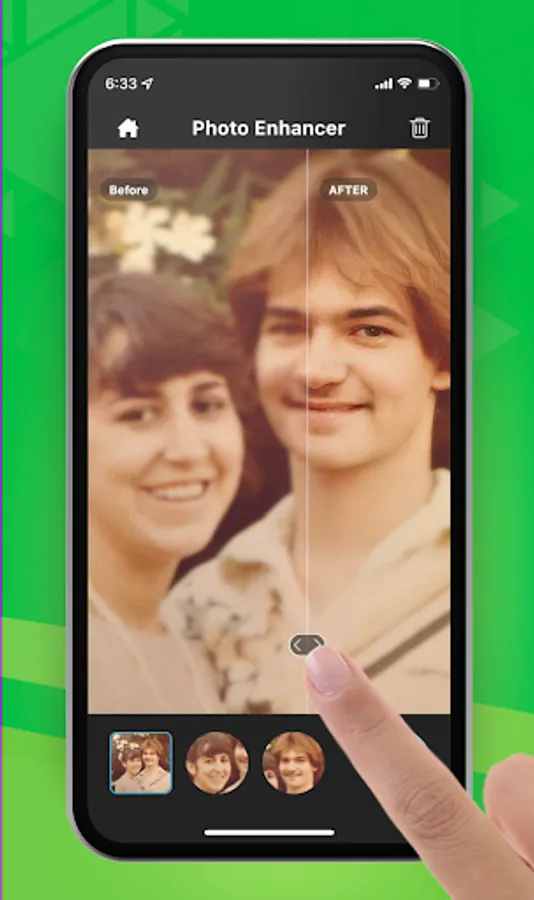 - Enhance old photos taken with old cameras or phones as if they were taken with new phones