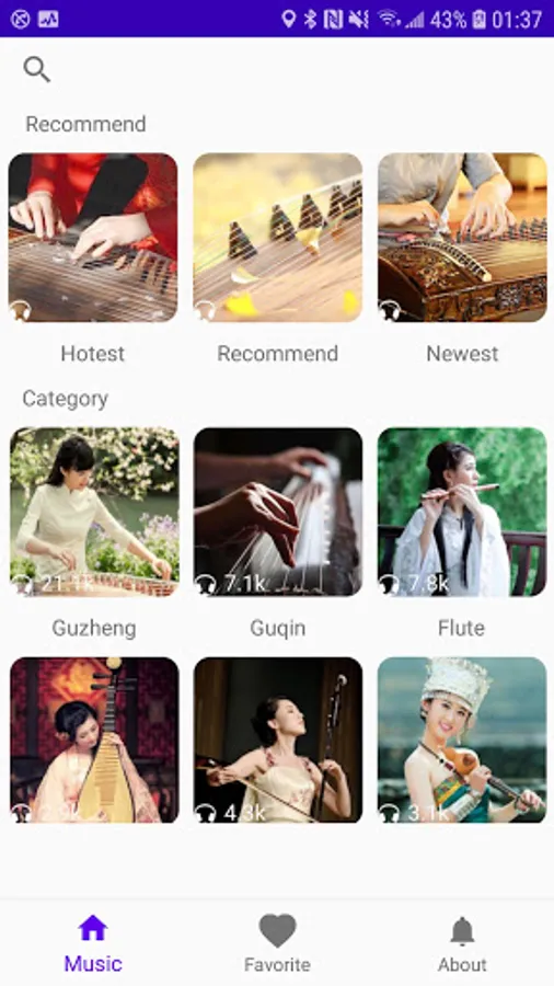Chinese classical music audition and download, Chinese folk music includes beautiful music played by traditional Chinese instruments such as Guzheng, Erhu, Guqin, Hulusi, Pipa, and Dizi.
