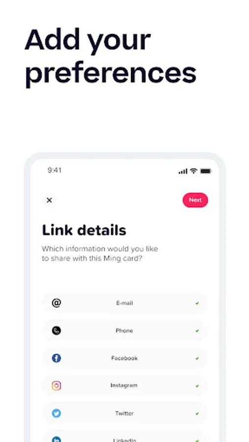 With Mingo, you can share your email, phone number, address, Instagram, Snapchat, TikTok, LinkedIn, Youtube, and many more. On