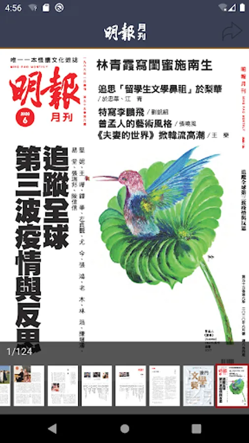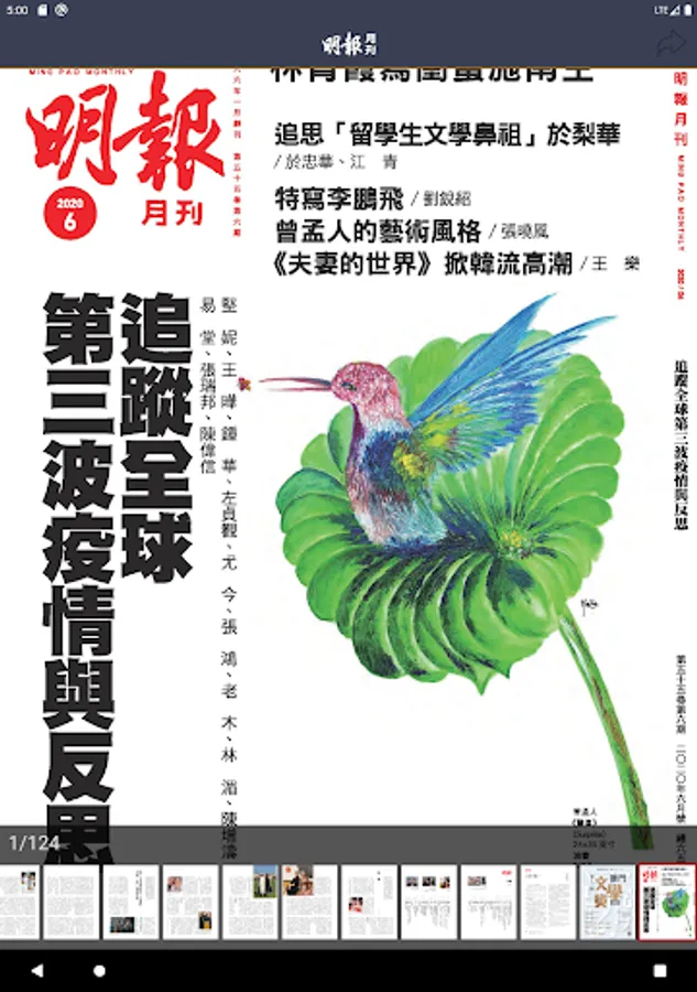 二千年度諾貝爾文學獎得主高行健先生曾在本刊創刊三十五周年酒會上分享他與《明報月刊》的感情:「《明報月刊》現在不僅是一個香港的文化刊物,也是香港一個少有的持之以恆的一個大型文化刊物,也可以說是全世界海外華人文化人和學者在文學藝術上交流的園地。」
